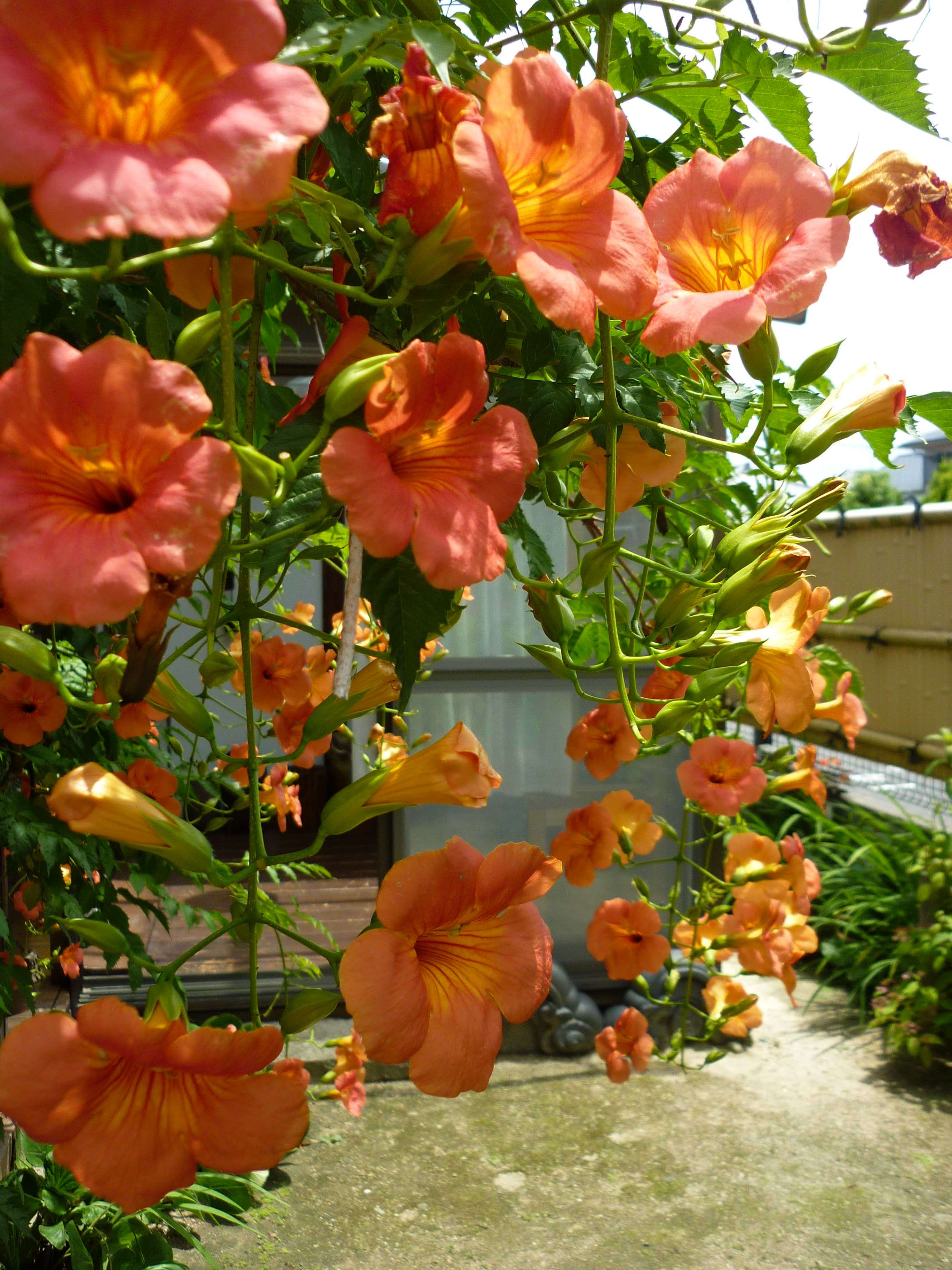 ノウゼンカズラ(凌霄花、Chinese trumpet vine)、開花時期7~8月、中国原産。 ダウンロードする|Download 2736 x 3648px、824.0 KB
