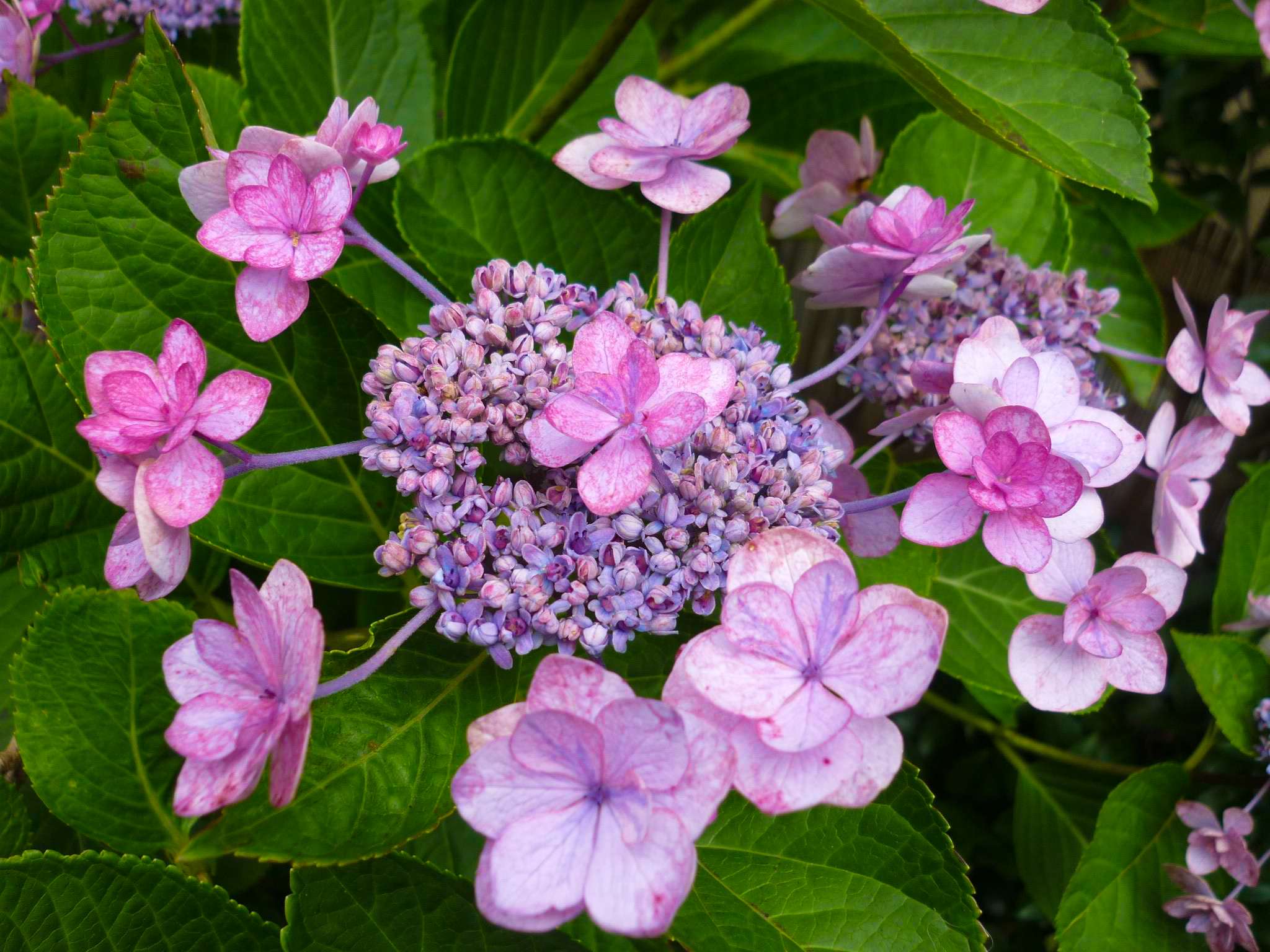 ガクアジサイ(額紫陽花、lacecap hydrangea)、開花時期5~7月、日本原産のものが多い。