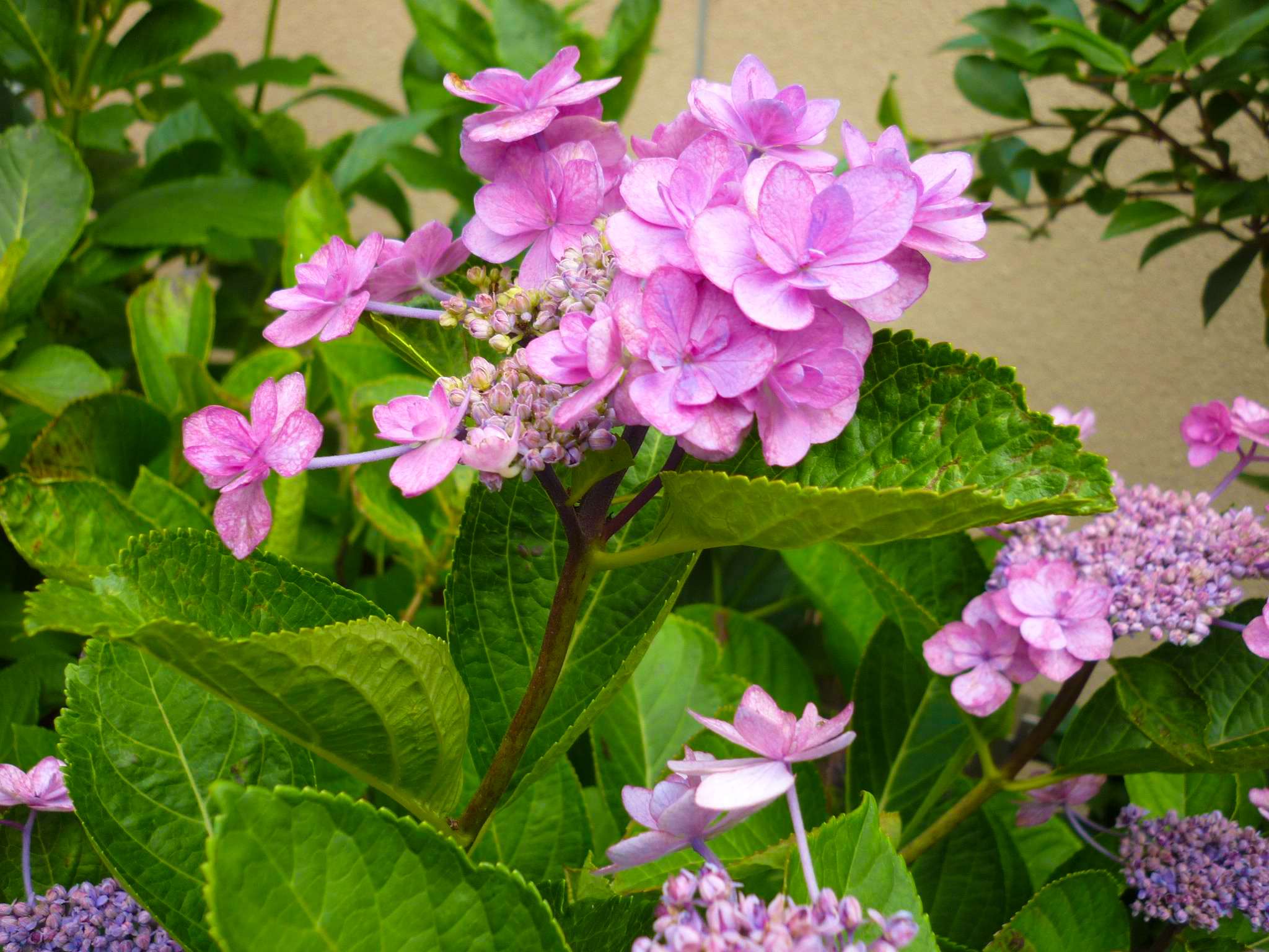ガクアジサイ(額紫陽花、lacecap hydrangea)、開花時期5~7月、日本原産のものが多い。