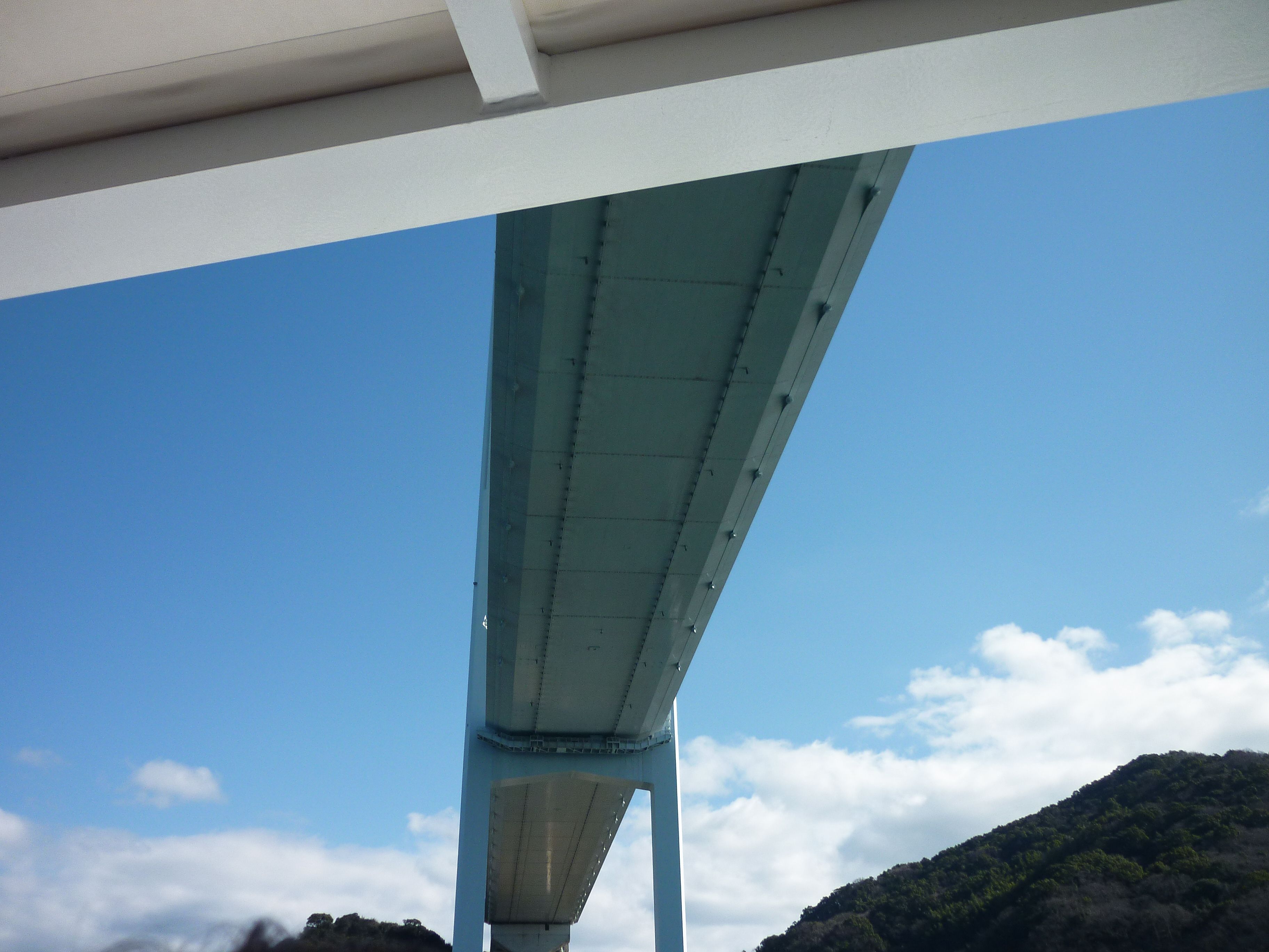 水面から非常に高い場所を人や車が通行する斜張橋の形式で、世界最大級の客船も通過できるようになっている。