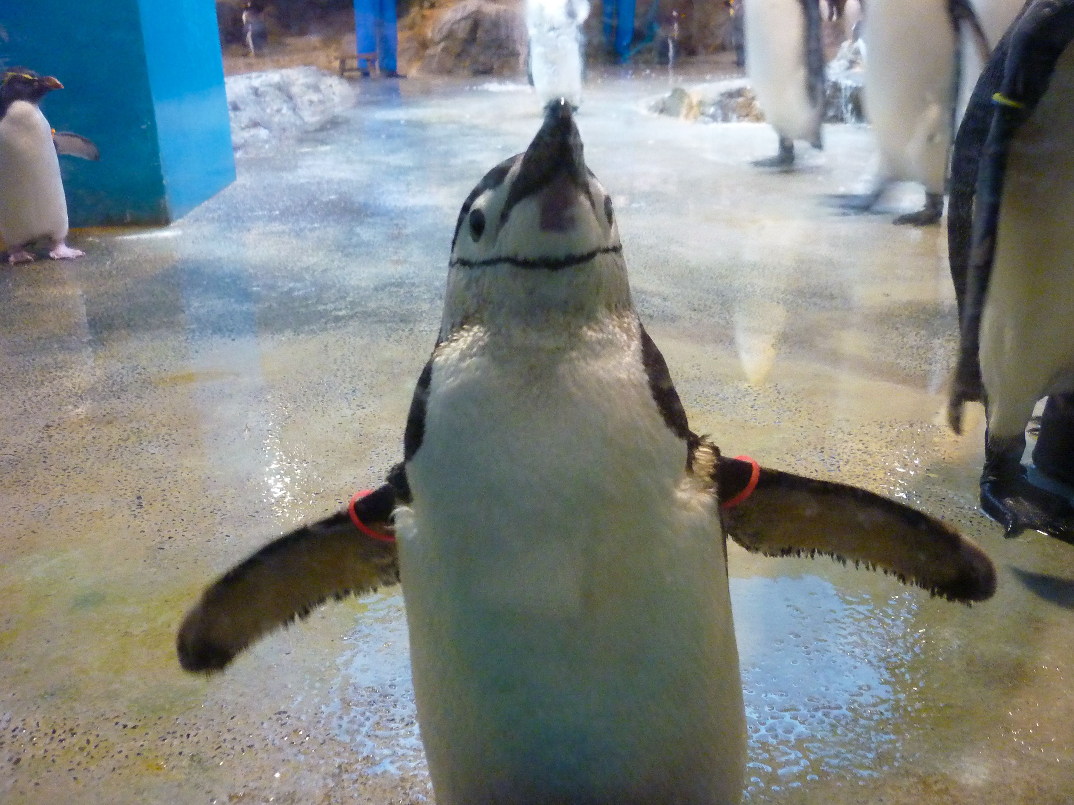 写真の彼は「ヒゲペンギン」、体長約70cm、体重約3.7~5.0kg。かわいい。