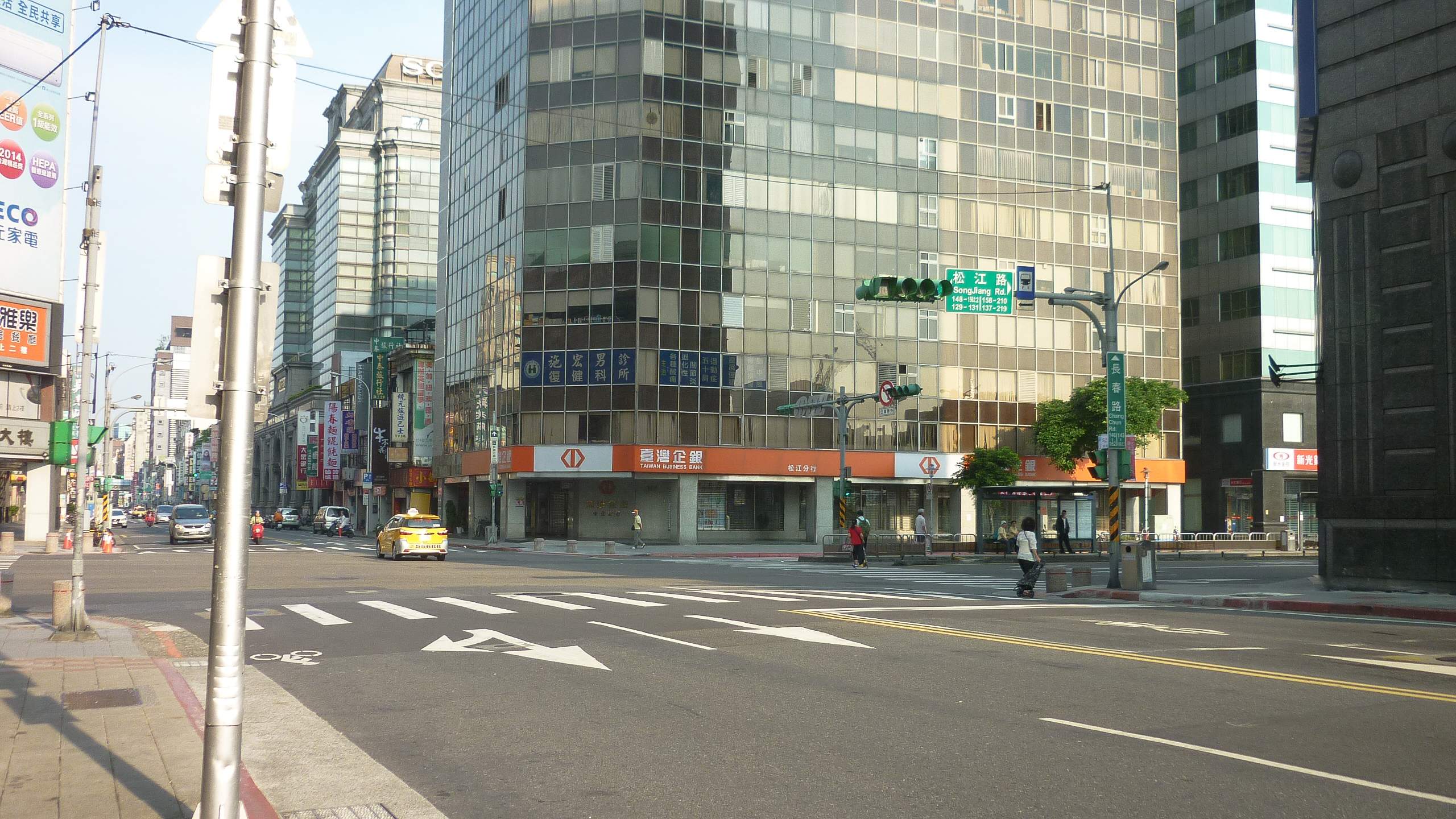 台湾台北市内長春路の付近。表通りには商業ビルやホテル、マンションが立ち並ぶ。