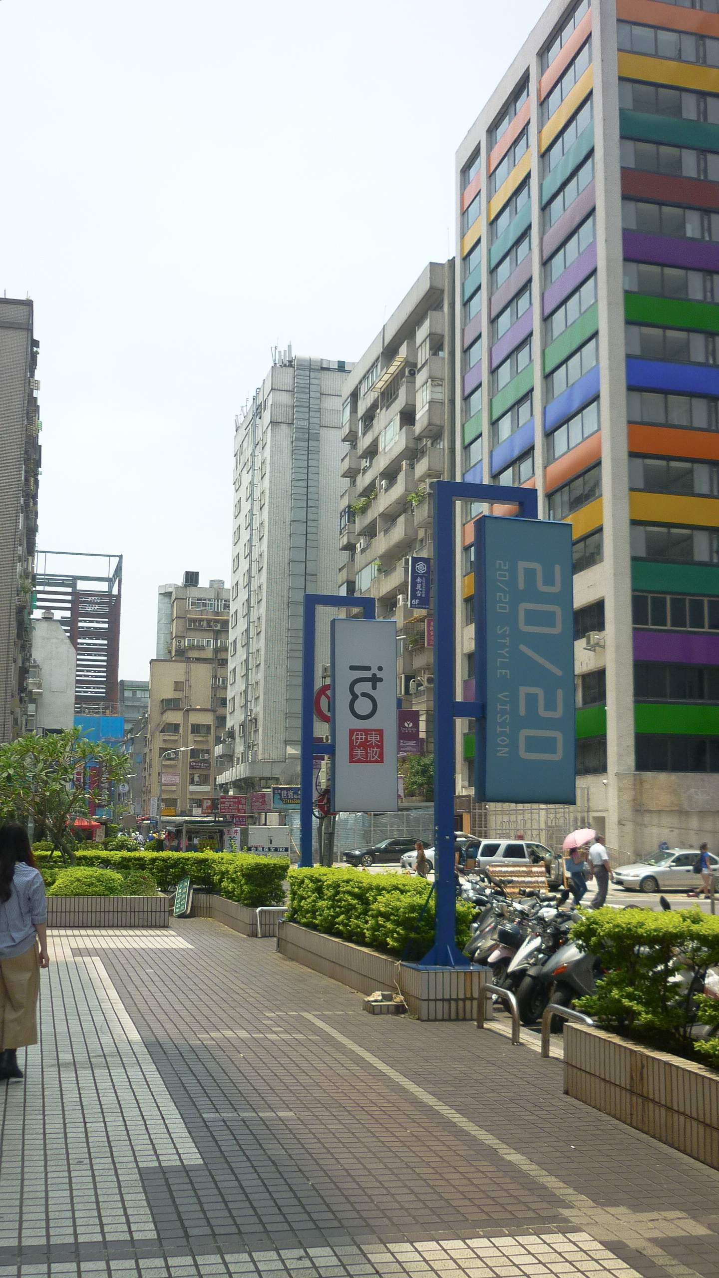 台湾台北市忠孝東路五段、付近。百貨店やファッションビル、レストランが並ぶ商業地。