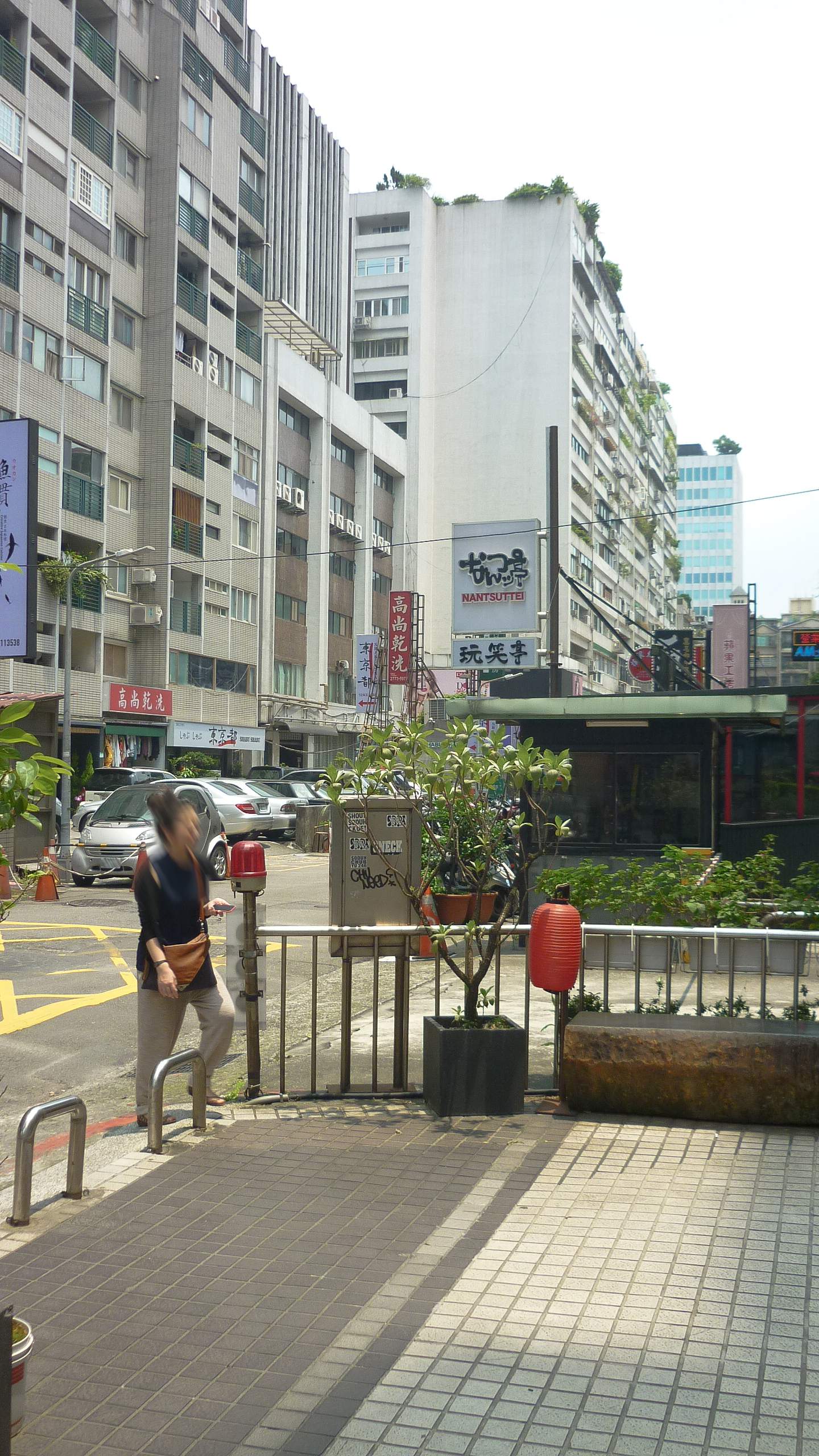 台湾台北市忠孝東路五段、付近。百貨店やファッションビル、レストランが並ぶ商業地。
