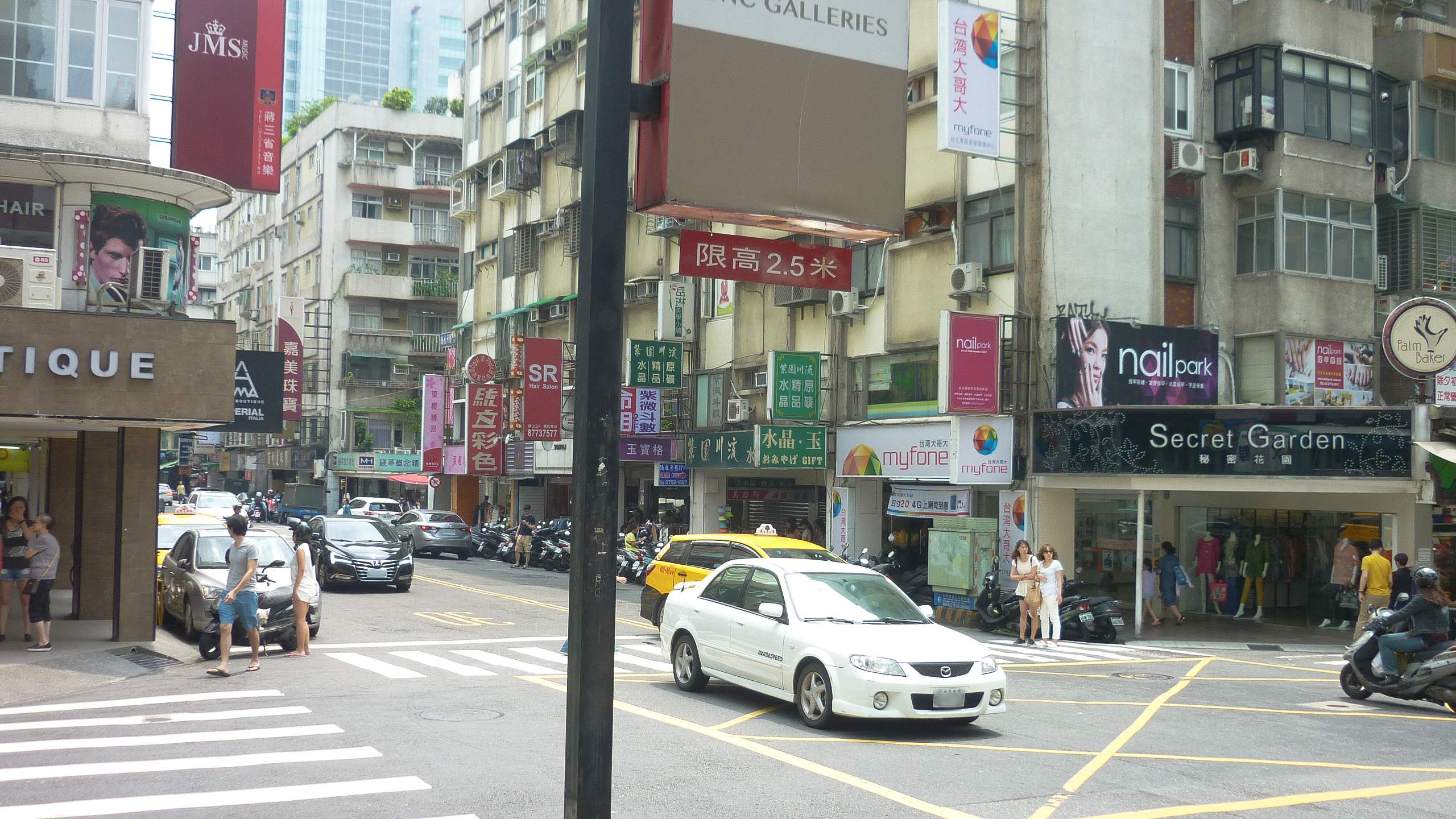 台湾台北市忠孝東路五段、付近。百貨店やファッションビル、レストランが並ぶ商業地。 ダウンロードする|Download 画像サイズ:2560 x 1440px、496.9 KB