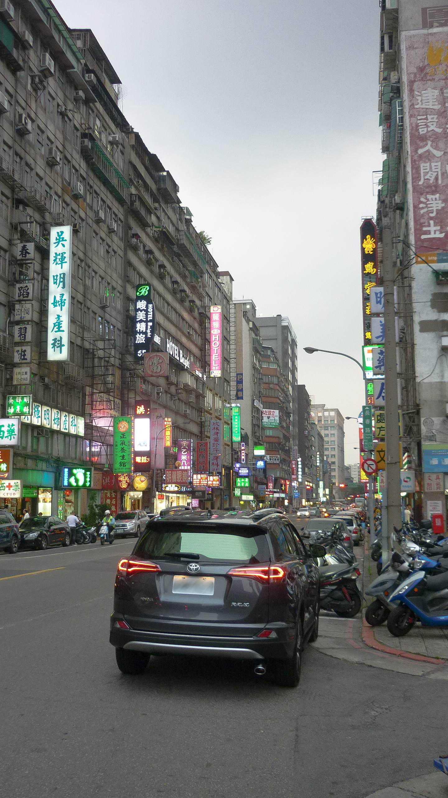夕方の台湾台北市内。看板には色とりどりのネオンが光る。 ダウンロードする|Download 画像サイズ:1440 x 2560px、463.3 KB